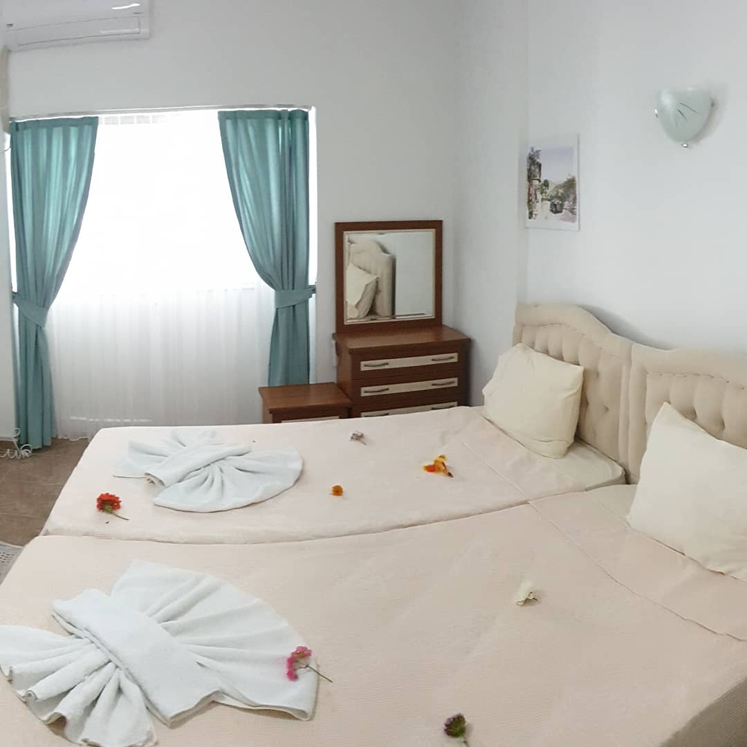 Pansiyonumuzda 5 odamız mevcuttur ve 3 er kişi rahatlıkla kalabilmektedir. 1 odamız da 4 kişiliktir. Sıcak suyumuz, Klimamız, Minibuzdolabımız ve televizyonumuz vardır.